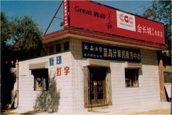 1994年8月,藍島計算機服務中心于延安市楊家?guī)X成立。主營計算機培訓,金長城電腦銷售。